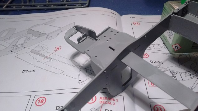 Waiting for the glue to set I had continued with step 13 and glued part D1-26 which made more sense than waiting to glue it in step 18.