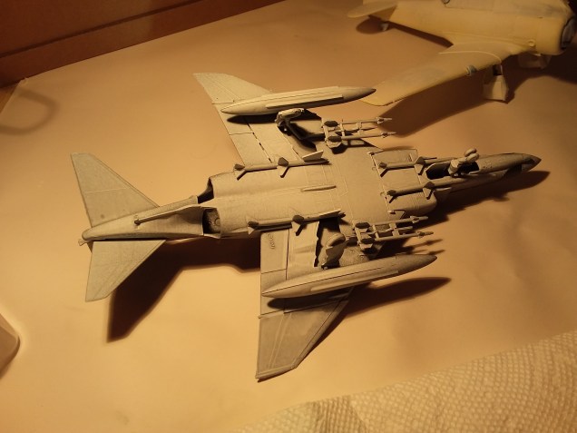 Decals will wait for airbrushing a clear coat. The F-4 Phantom got also a white basecoat on its underside.